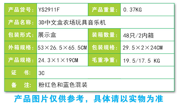 YS2911F 3D中文盒農場玩具音樂機