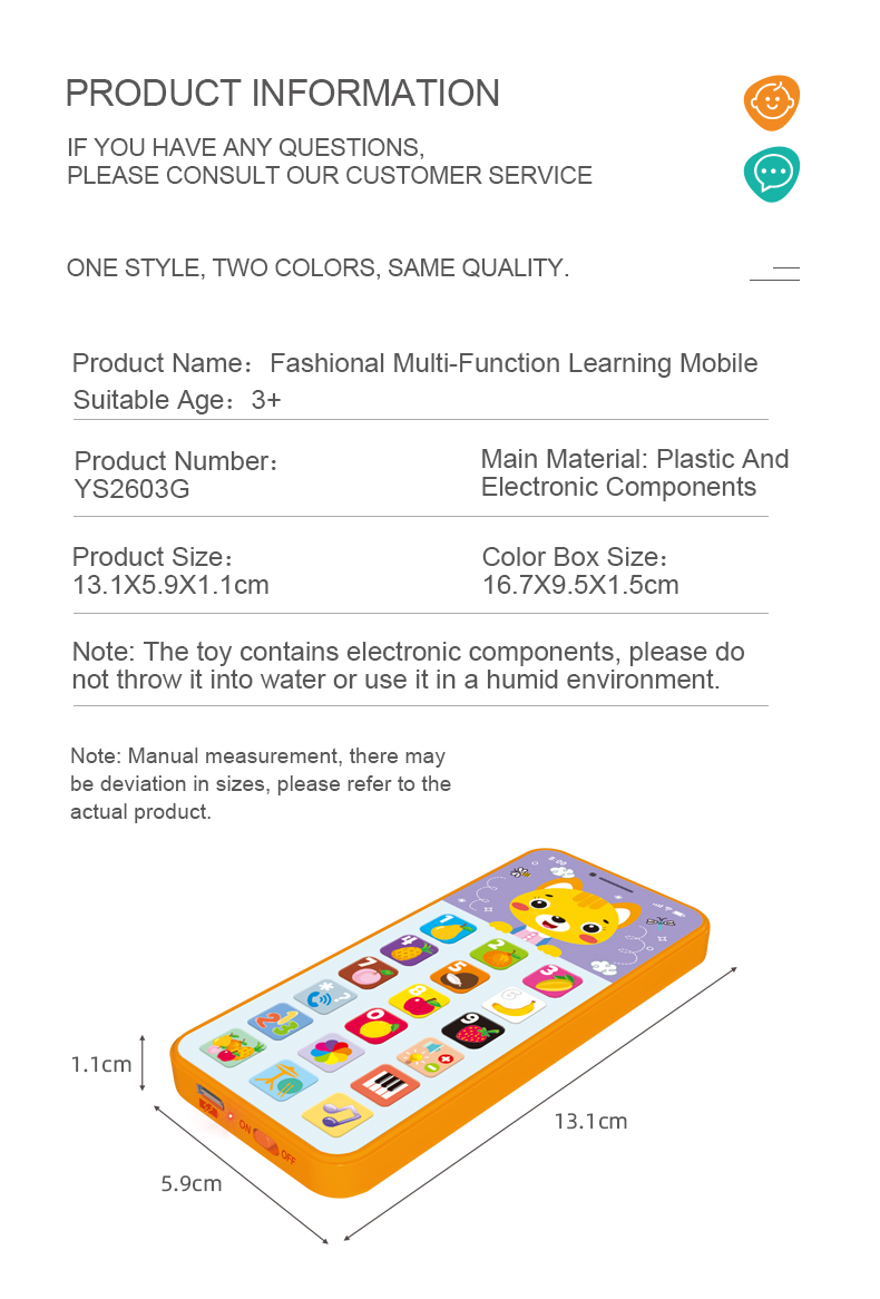 YS2603G 阿文學習玩具充電手機