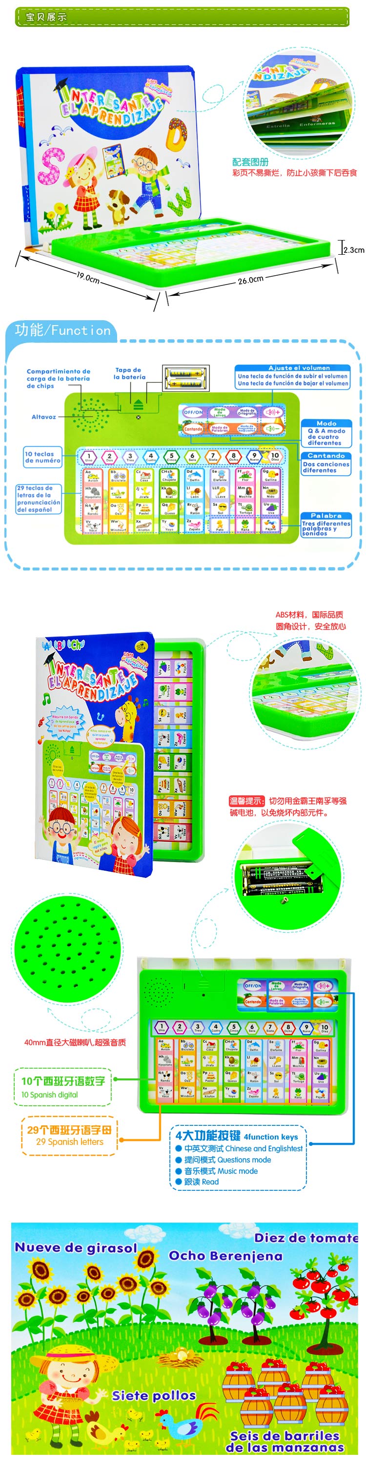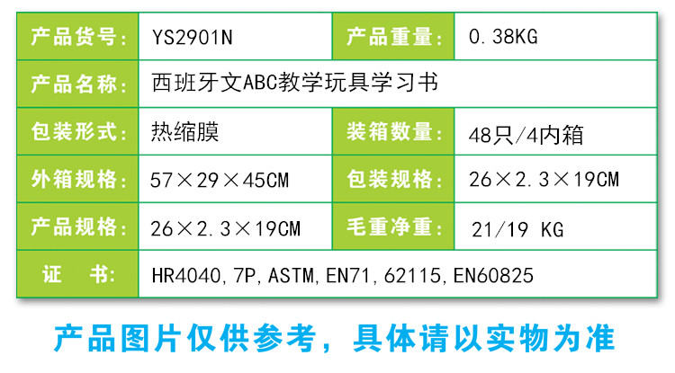 YS2901N 西班牙文ABC教學玩具學習書