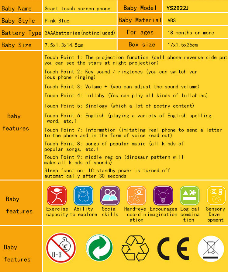 YS2922J 英文智能觸屏玩具手機