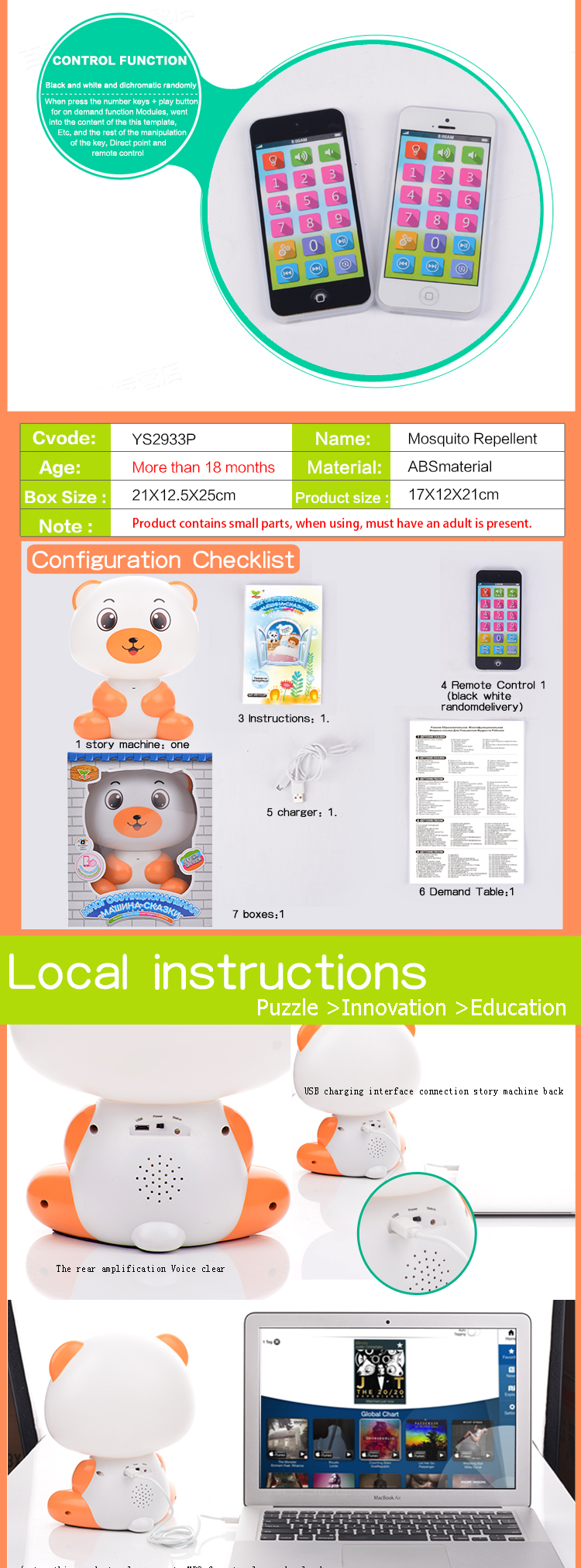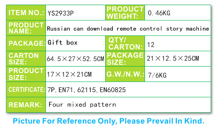 YS2933P 俄文可下載遙控夜燈故事機